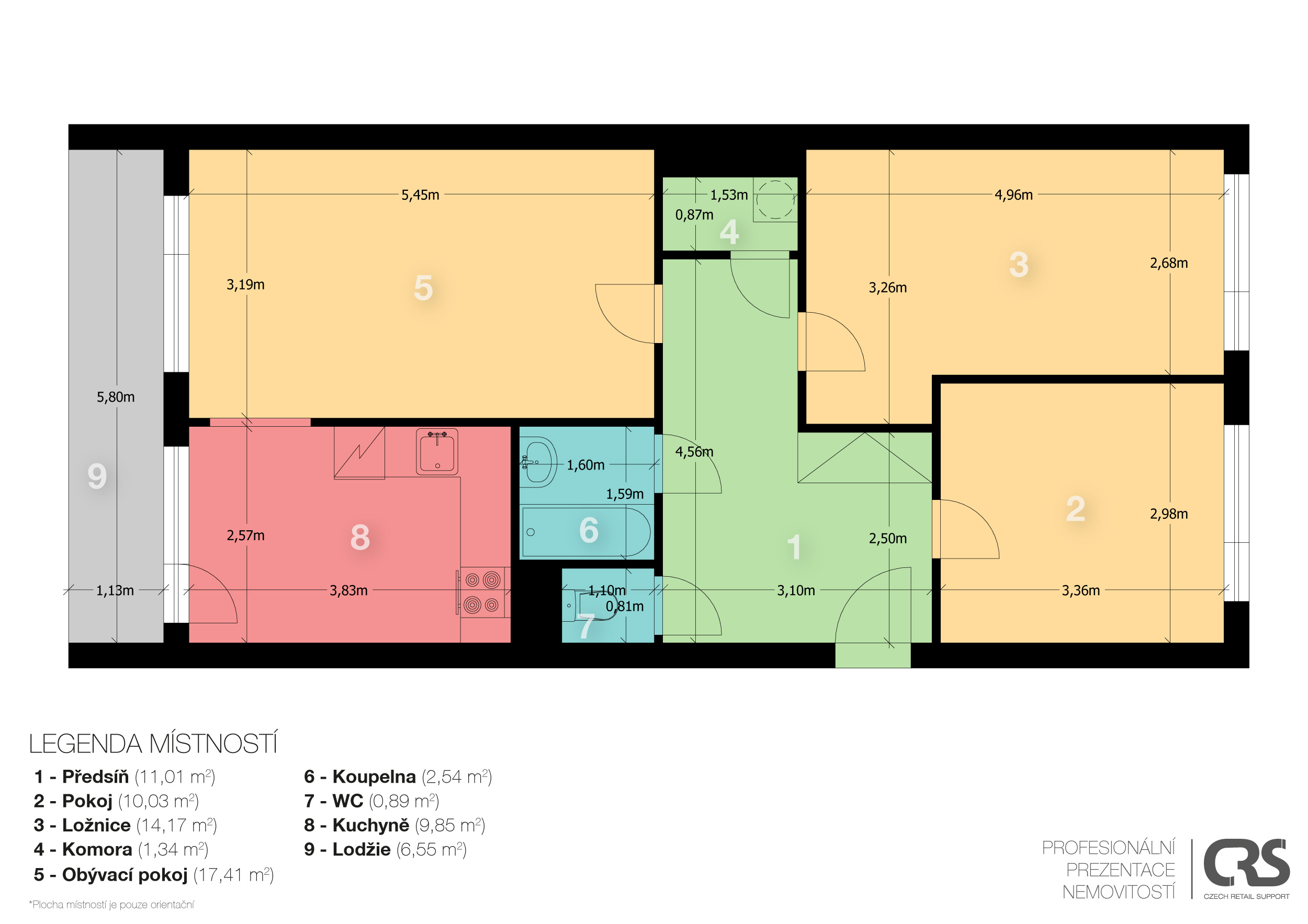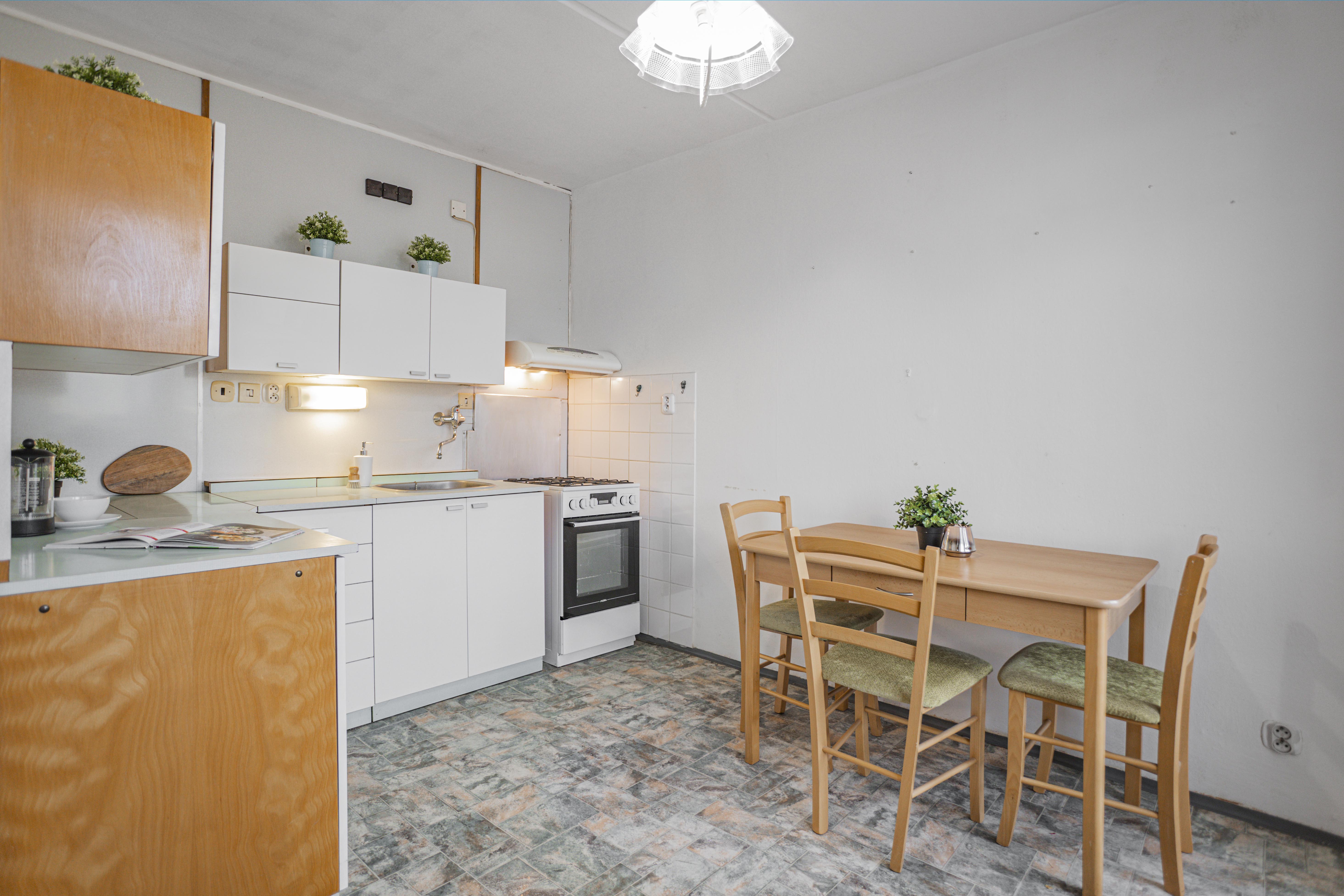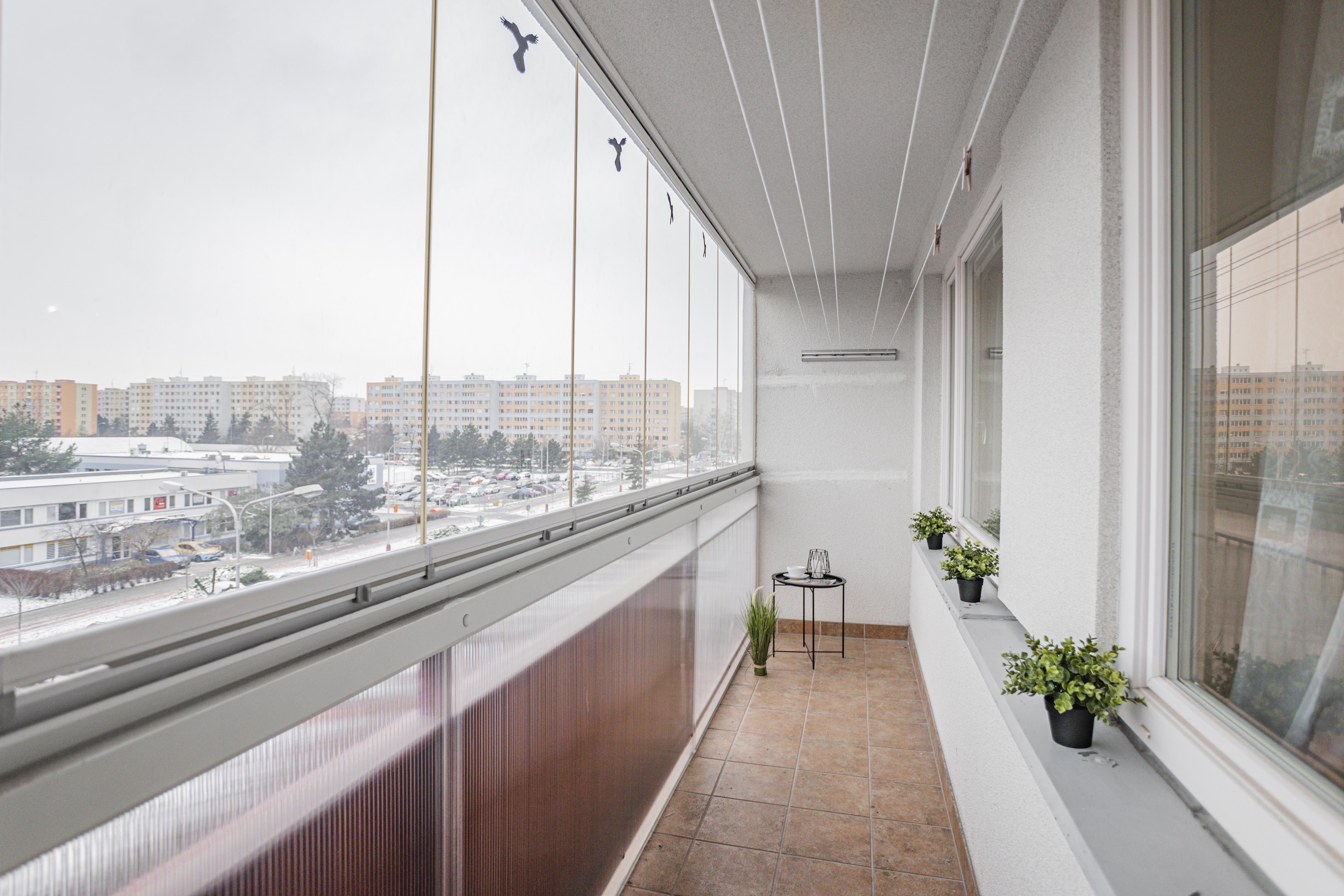 Na první pohled obyčejný panelákový byt v 5. podlaží. Jen u části z nich se ale sejde tolik plusů jako právě u této nemovitosti. Posuďte sami: kuchyně a obývací pokoj jsou orientované na jih, takže prosluněné a plné světla, prostorná lodžie (o ploše 6,6 m2), která se táhne podél kuchyně a obývacího pokoje, poloha a přijatelné měsíční zálohy na provoz bytu. Také celý dům je ve výborné kondici (zateplený, zrekonstruovaný a s novými výtahy) díky velmi dobře hospodařícímu SVJ. Přímo v bytě je jedna komora (1,3 m2), budoucí spíž? Na patře vedle výtahu pak druhá komora (1m2), a patří k němu i sklepní kóje (2,6 m2), kam můžete pod strop zavěsit třeba jízdní kola. Na nedostatek úložných prostor si tak nemůžete stěžovat. Byt má celkovou užitnou plochu 77,5 m2. Byt je v původním stavu, ale současnými majiteli velmi dobře udržovaný. Nechají tu i část nábytku. Na vás pak samozřejmě bude, jestli si ho ponecháte, nebo jestli interiéru vtisknete podobu podle vlastních představ, parametry na to má. Koupi bytu je možné financovat hypotečním úvěrem, s jehož zajištěním vám rádi pomůžeme.